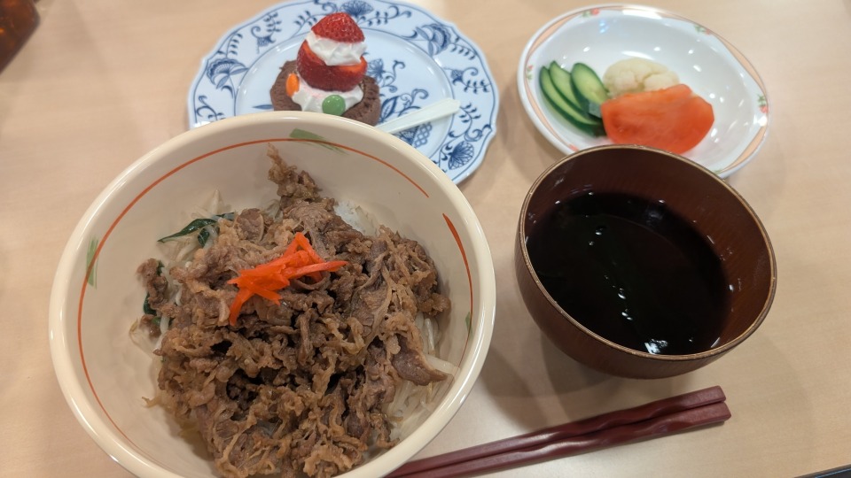 ■今月のメニュー:スタミナ満点の焼き肉丼&クリスマスプチケーキ